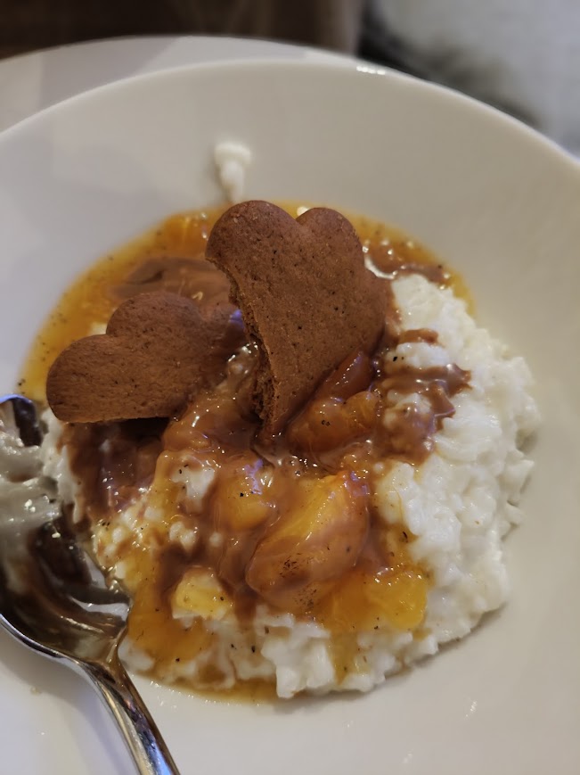 Riisipuuro, marinoidut persimonit ja biscofftahna